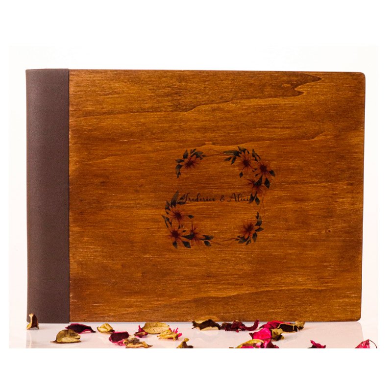 Álbum de Boda de 40 páginas o 20 pliegos, con portada en madera + nombres novios.